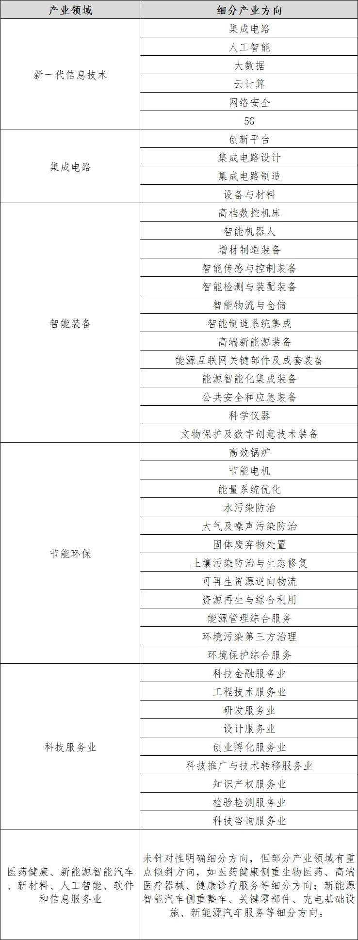 表1 十大高精尖產業細分方向