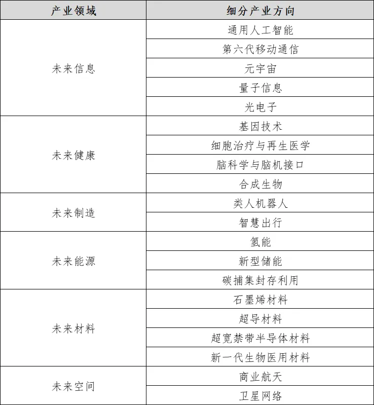 2023年9月8日,北京市發布《北京市促進未來產業創新發展實施方案》,提出北京市下一步重點發力的未來信息、未來健康、未來制造、未來能源、未來材料、未來空間六大產業領域和20個細分產業方向,進一步完善、明確了北京市高精尖產業體系中“一批未來前沿產業”的細分方向。